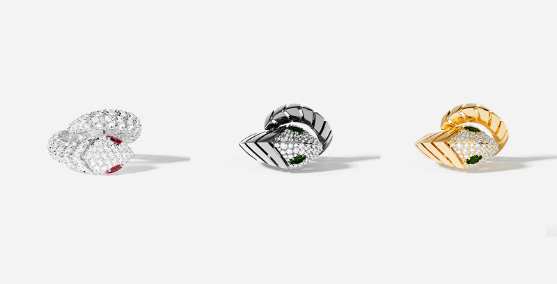 以蛇形环绕线条设计,适合日常热爱存在感强烈的珠宝女性选择,即使素净简约着装也能拥有强大的自信光采。