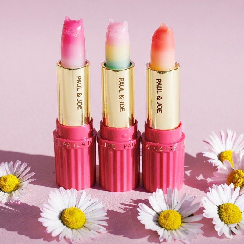 Paul & Joe猫咪香香限量渐层护脣膏情境图。 擦起来则含有含玻尿酸、胶原蛋白、荷荷巴油、乳木果油多重保湿修护成份,能够迅速滋润双唇,展现水果般诱人JUICY光泽。